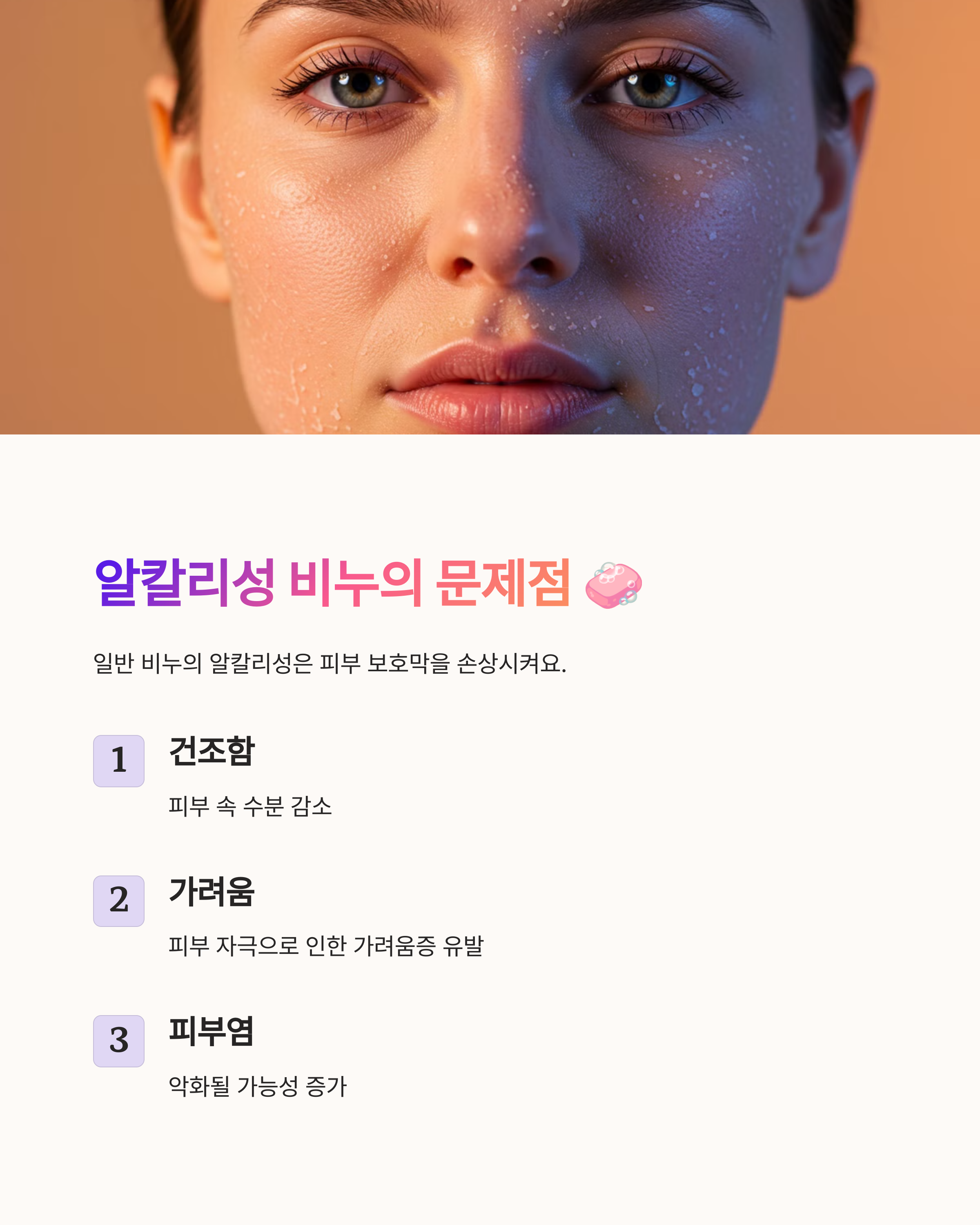 하지만 비누의 알칼리성은 피부의 천연 보호막을 손상시켜 건조함, 가려움, 피부염 등의 문제를 일으킬 수 있습니다. 따라서 다음과 같은 방법으로 비누 사용 시 피부 자극을 최소화할 수 있습니다.