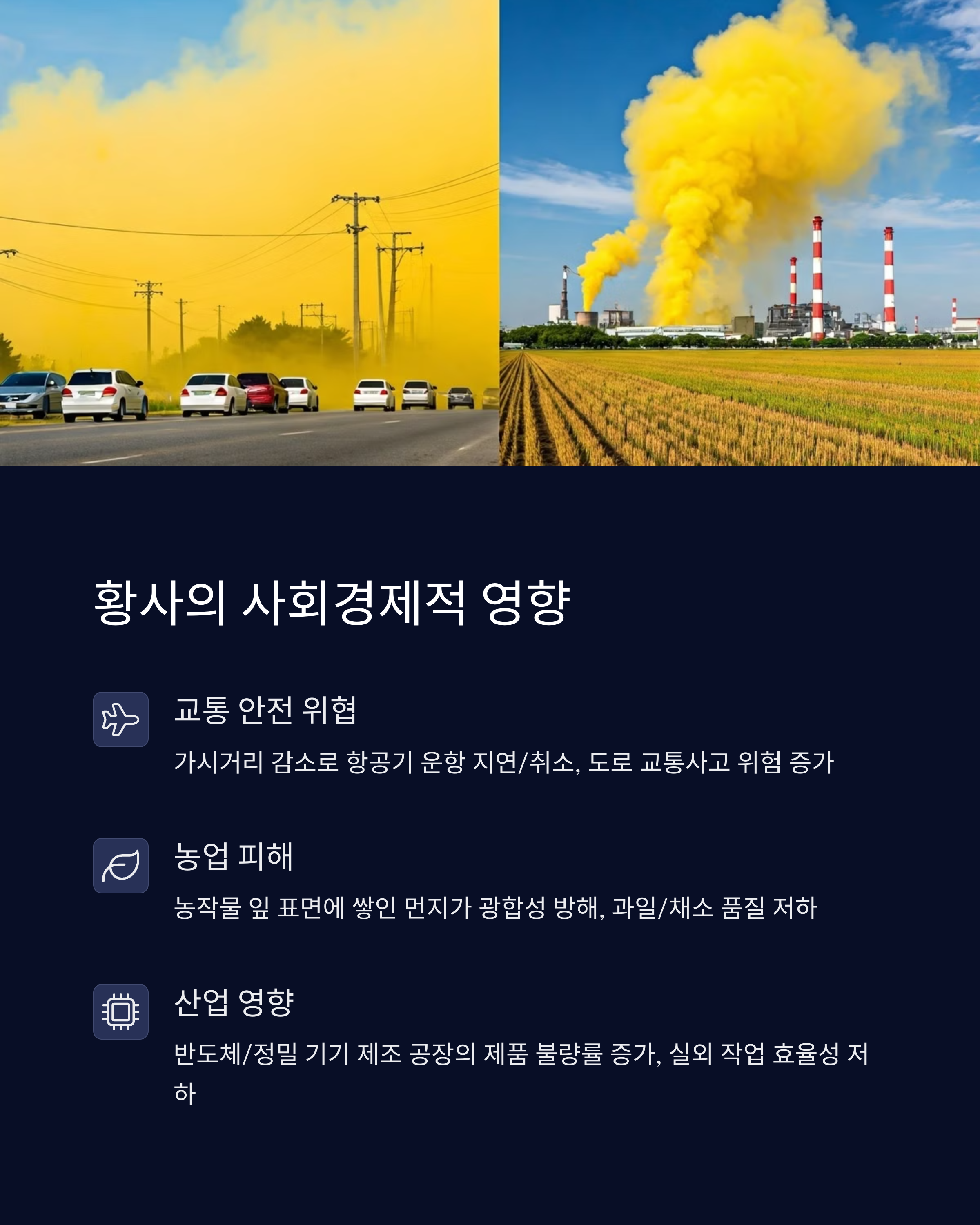 황사가 심한 날에는 야외 활동이 제한되고, 창문을 닫고 생활해야 하는 불편함이 따릅니다. 또한, 누렇게 변색된 풍경은 심리적으로도 불쾌감을 줄 수 있습니다.