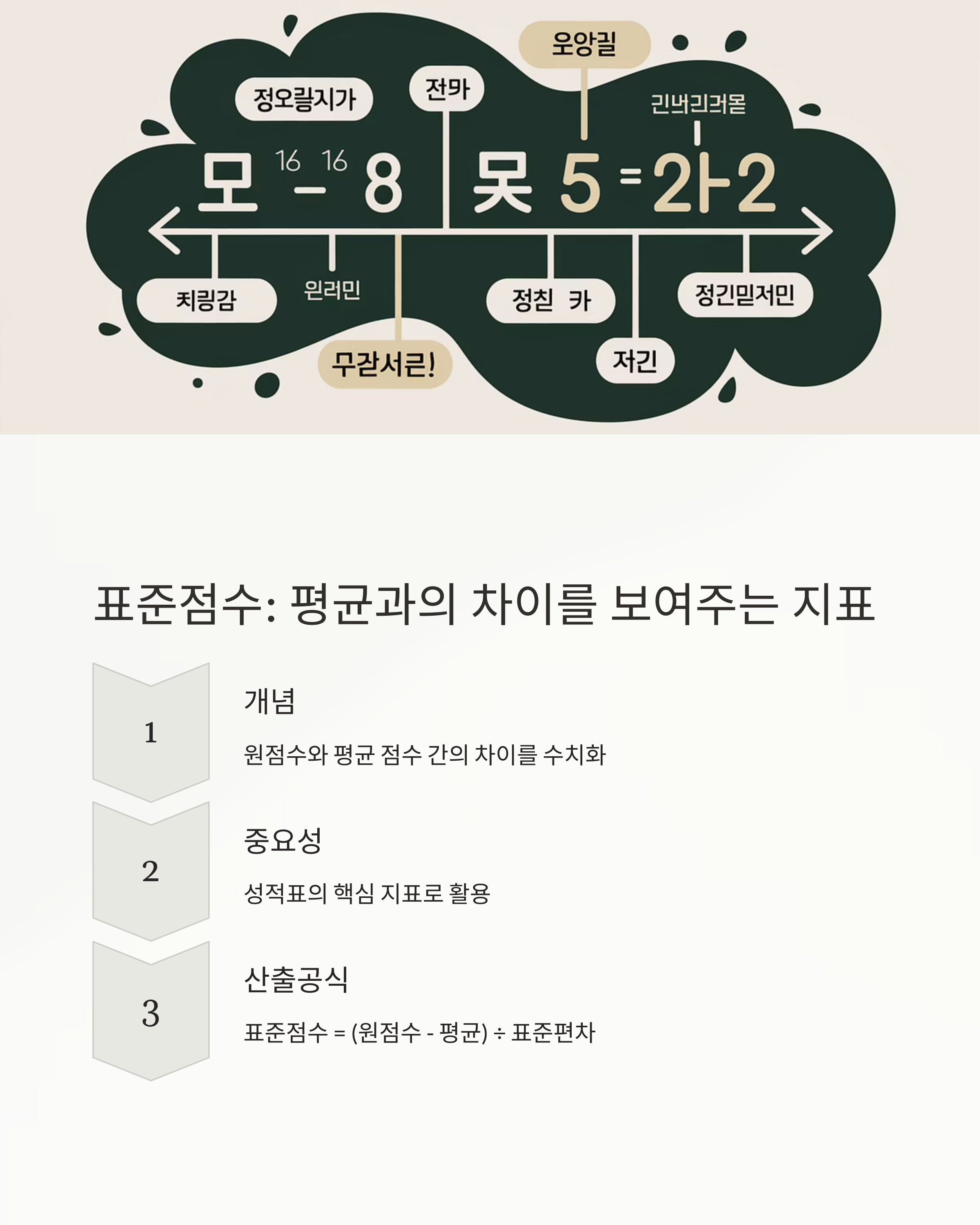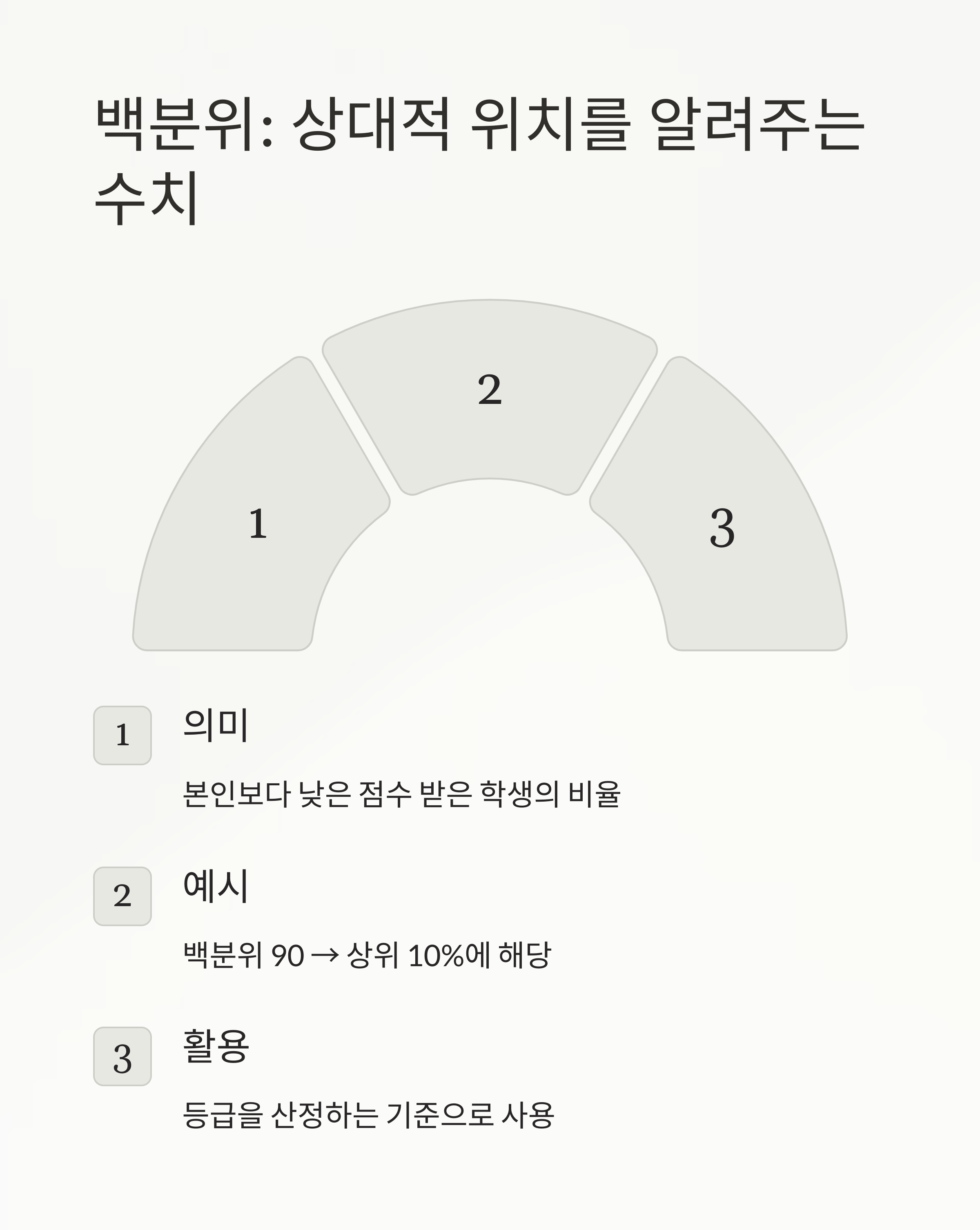 1. 핵심 용어 완벽 이해: 표준점수, 백분위, 등급, 원점수